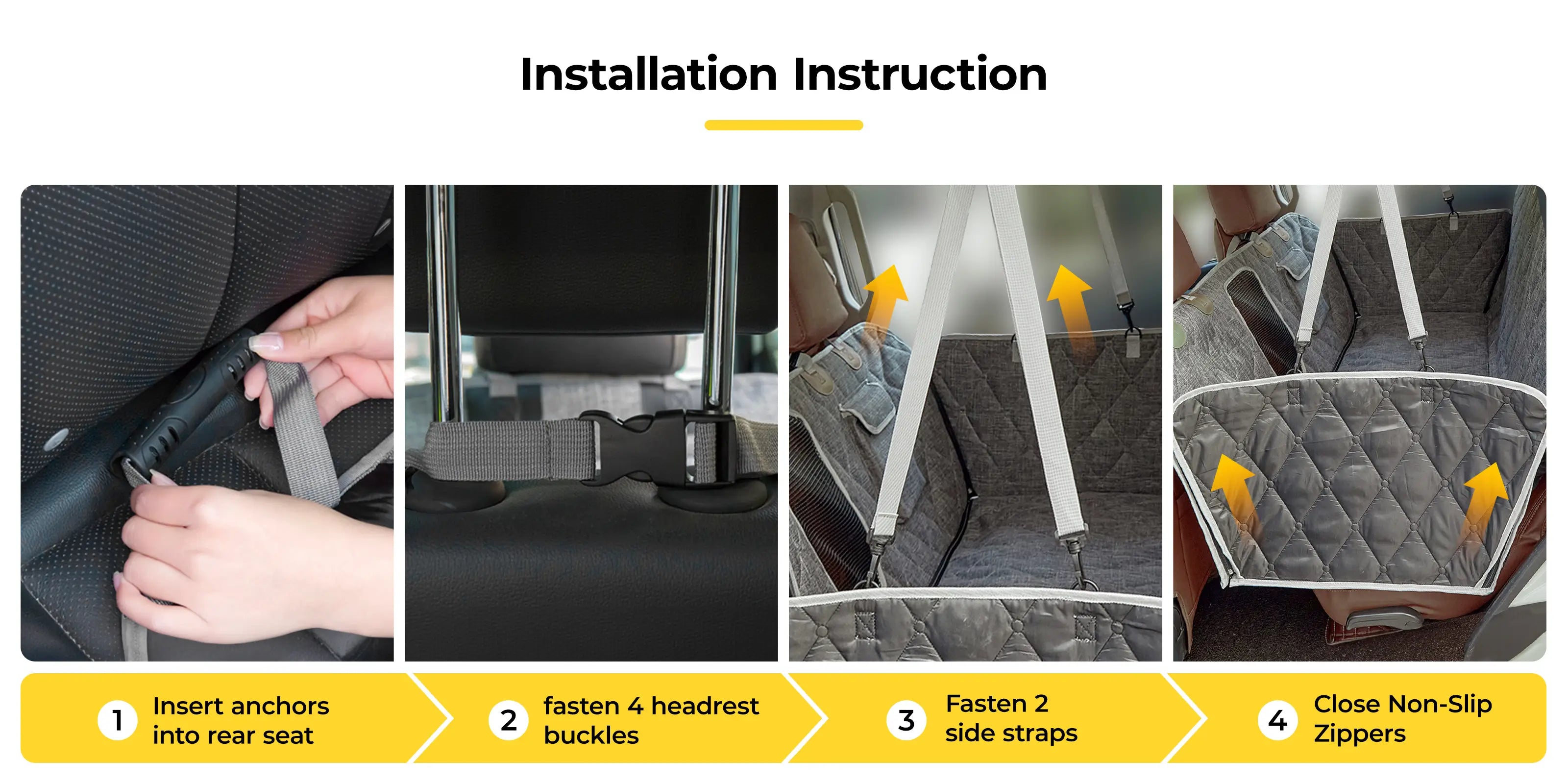 🐕 Safety First – Features non-slip backing, seat anchors, adjustable straps, and seatbelt openings to ensure the cover stays in place and your pets travel securely.