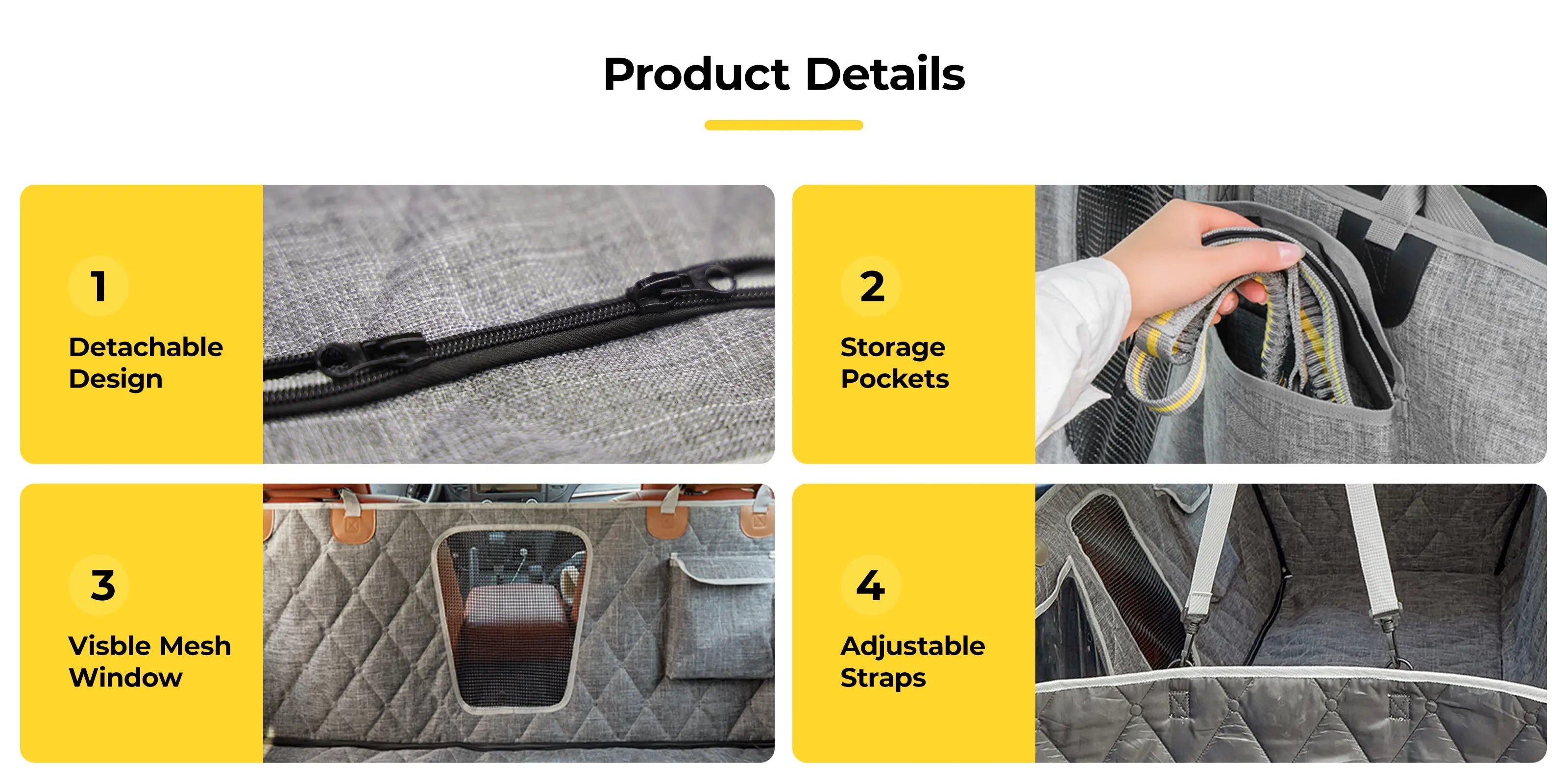 🐕 Convertible Design – Easily transforms between hammock, bench seat, single-seat, bucket, and cargo liner modes. Use full coverage for backseats or zip down one side for solo pet rides. Perfect for families with multiple pets or flexible travel needs.